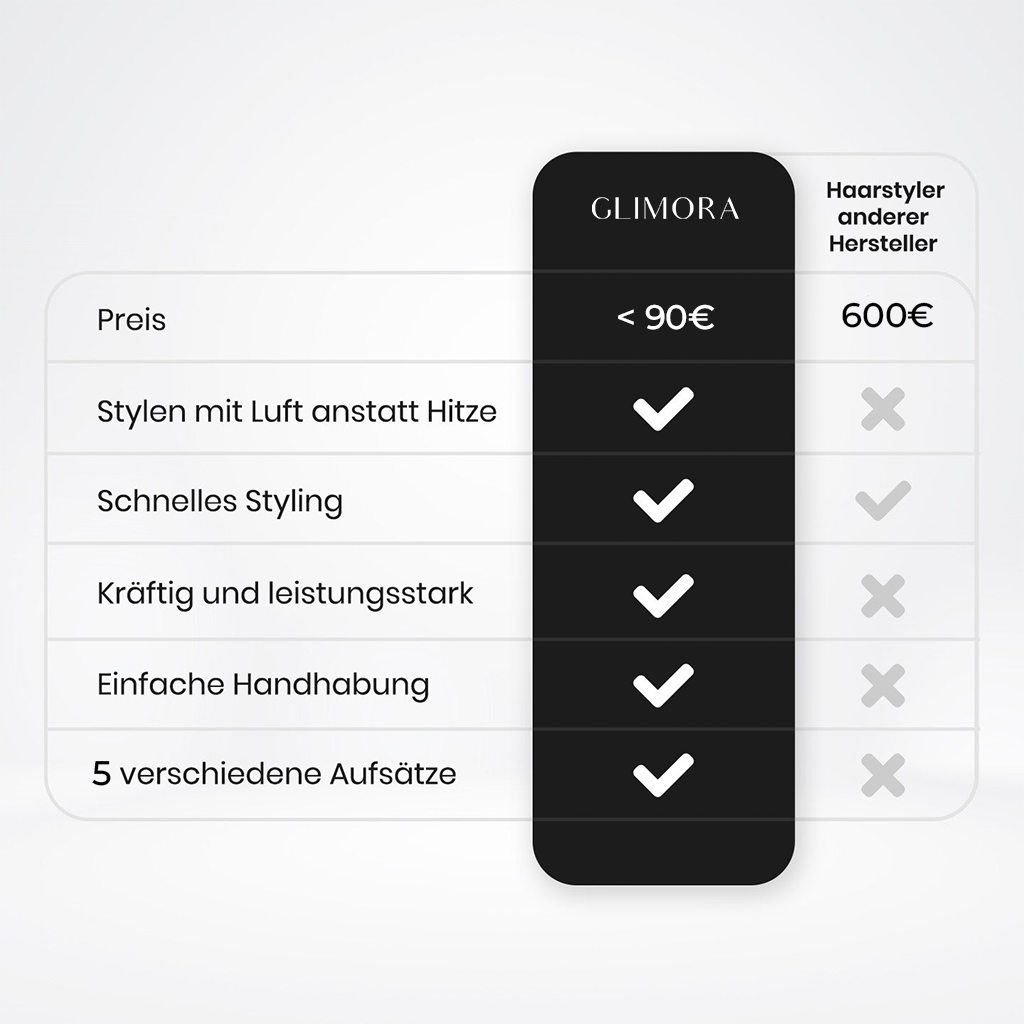 The combination of power and precision makes the difference: While cheap alternatives can damage your hair, the GLIMORA® Styler ensures healthy shine, long-lasting styling, and a feeling like you just came from the salon – every day.